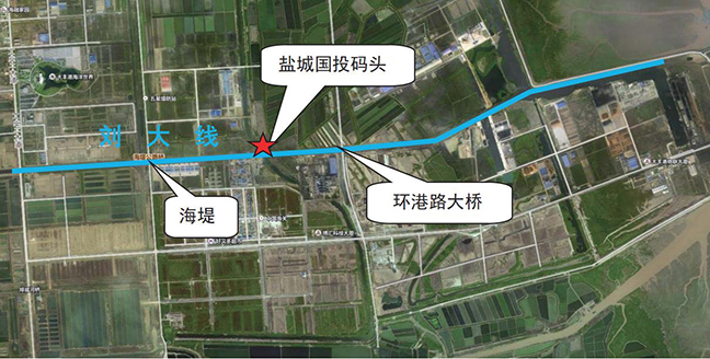 項(xiàng)目位于大豐港區(qū)劉大線北岸、環(huán)港路大橋上游 1.1 公里處。