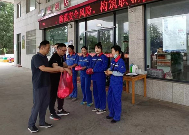 活動中,物資集團(tuán)和新倫石化公司負(fù)責(zé)人一行來到大徐、金達(dá)加油站,為一線職工送上防暑降溫物品,關(guān)切詢問大家的日常工作情況,叮囑他們在高溫期間要合理安排作業(yè)時間,注重勞逸結(jié)合,做好個人防護(hù)。隨后,物資集團(tuán)負(fù)責(zé)人詳細(xì)了解加油站經(jīng)營銷售情況,并要求現(xiàn)場管理人員切實(shí)做好防暑降溫措施和防汛工作,加強(qiáng)對加油機(jī)、油罐區(qū)、配電室等設(shè)備設(shè)施的日常巡查,及時消除安全隱患,營造平安穩(wěn)定的工作環(huán)境。