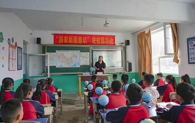 當(dāng)日上午,河北省自然資源廳、河北省測(cè)繪學(xué)會(huì)、河北中色測(cè)繪公司相關(guān)同志共同走進(jìn)承德市隆化縣柵子村小學(xué),開(kāi)展“國(guó)家版圖意識(shí)”進(jìn)校園活動(dòng),為同學(xué)們送去了一堂有趣的國(guó)家版圖知識(shí)專(zhuān)題課?;顒?dòng)現(xiàn)場(chǎng),石家莊鐵路職業(yè)技術(shù)學(xué)院李笑娜老師從地圖歷史、地圖規(guī)范、地理信息安全等方面,深入淺出地向同學(xué)們講解了國(guó)家版圖相關(guān)知識(shí),以及地球儀的正確使用方法,介紹了新版標(biāo)準(zhǔn)地圖的詳細(xì)情況。中色測(cè)繪公司向該小學(xué)和村委會(huì)贈(zèng)送了國(guó)家版圖知識(shí)宣傳冊(cè)、地圖冊(cè)、地球儀以及文體學(xué)習(xí)用品,鼓勵(lì)同學(xué)們積極學(xué)習(xí)版圖知識(shí),進(jìn)一步樹(shù)立國(guó)家版圖意識(shí),自覺(jué)維護(hù)國(guó)家版圖尊嚴(yán)。