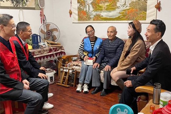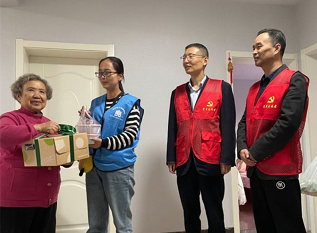 活動(dòng)中,黨員志愿者們來(lái)到桂苑社區(qū)華佳梅苑小區(qū),同社區(qū)工作人員一起為老黨員們送去精心準(zhǔn)備的食品和書(shū)籍,并與他們拉家常,傾聽(tīng)他們的心聲,關(guān)切詢問(wèn)他們的日常起居、身體健康情況,并叮囑老人們?cè)趽Q季時(shí)節(jié)注意天氣變化,及時(shí)增添衣物,保重身體、安度晚年。一聲問(wèn)候,幾句細(xì)語(yǔ),洋溢著濃濃的情意,讓老黨員們深切感受到黨組織的關(guān)懷與溫暖。